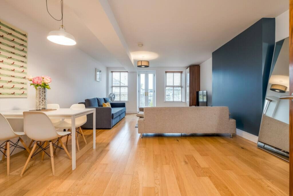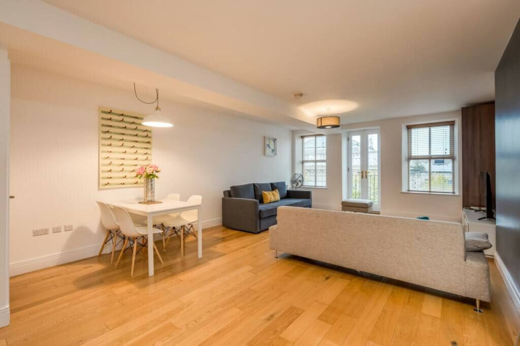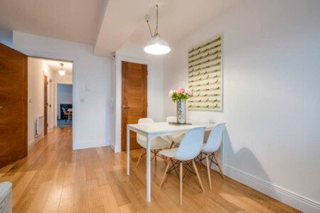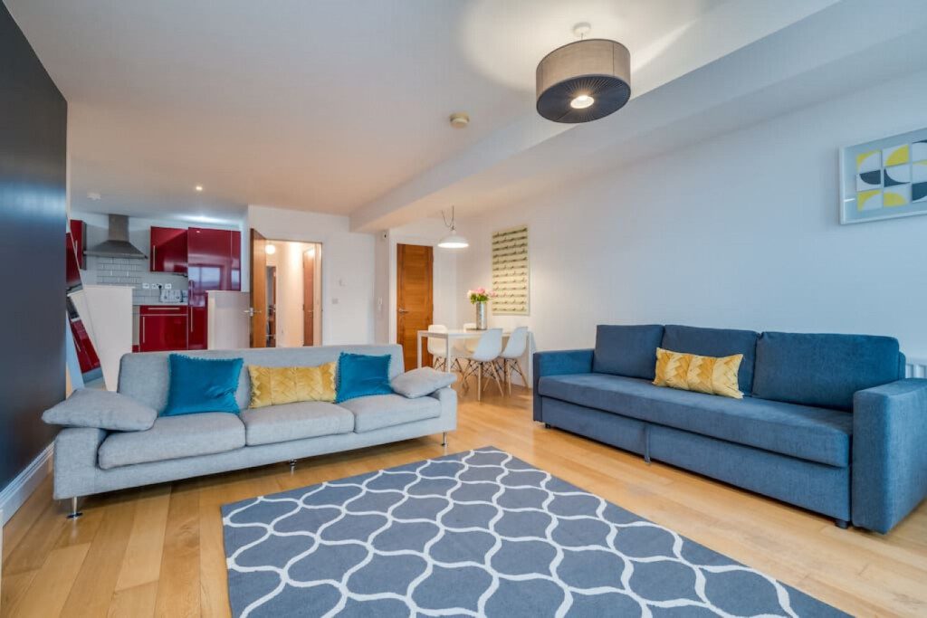 Modern, spacious apartment in the heart of Belfast’s Cathedral Quarter in the city centre. With high ceilings and bright, modern decor this apartment is the ideal place to base yourself as you explore the energetic and vibrant city on your door step. Sleeps up to 5 people. 1 double bed, 1 double sofa bed and 1 single sofa bed.